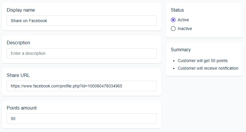 Fixed amount of points - customers will receive the specified points.