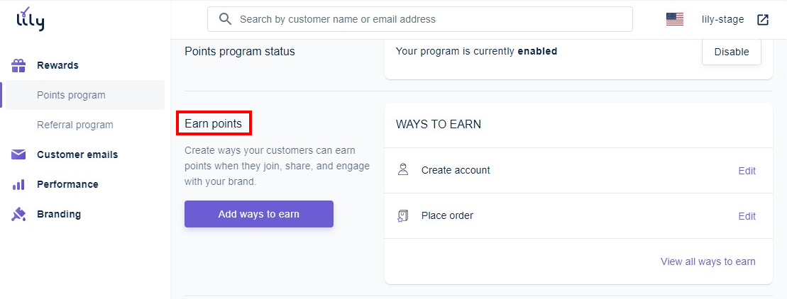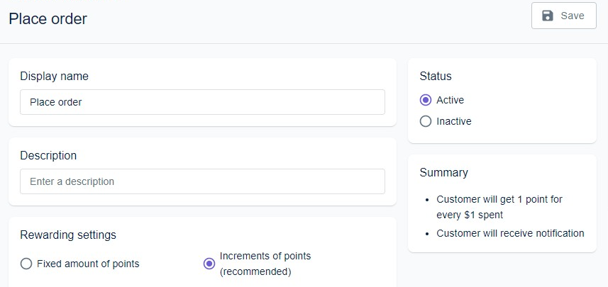 The rest of the actions can be added by clicking on 'Add ways to earn'. Let's see how you can set it up with the example of 'Place order' action.
