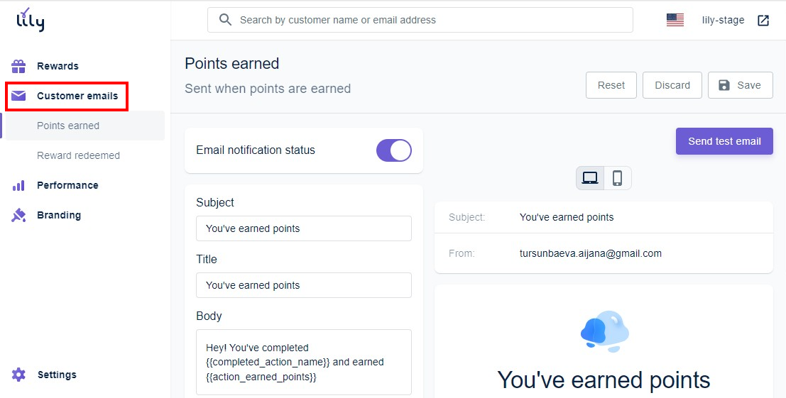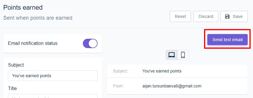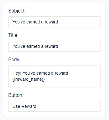 - Redeem a reward - Sent to the users who exchanged their points for the available discount.
